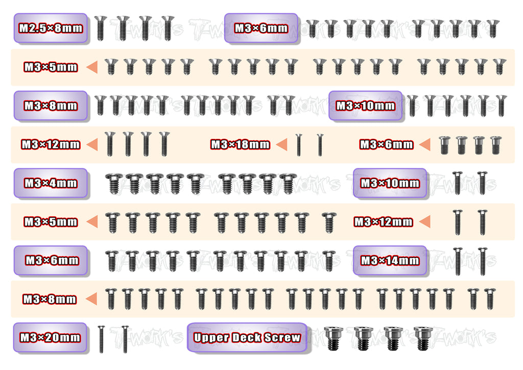 TSSU-TC8-G 64 Titanium Screw set ( UFO Head ) 116pcs. ( For Team Associated TC8 Graphite-Spec Car )