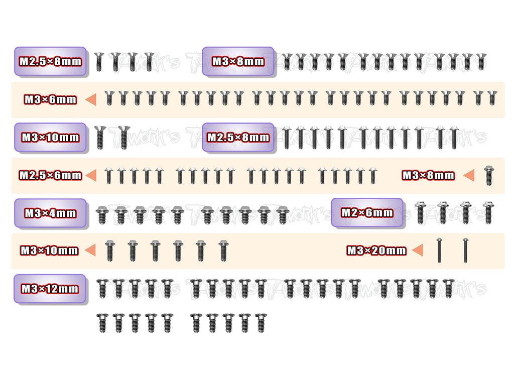 TSSU-TC8-G 64 Titanium Screw set ( UFO Head ) 116pcs. ( For Team Associated TC8 Graphite-Spec Car )