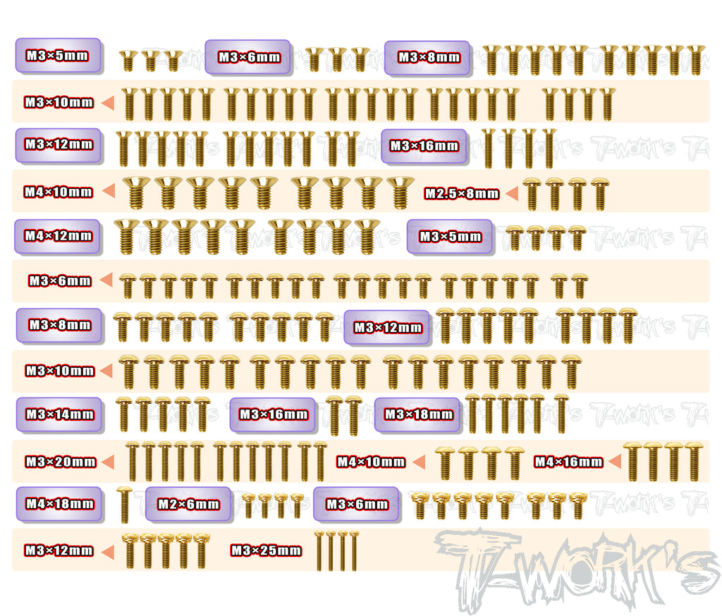 GSS-X3GTS'26 Gold Plated Steel Screw Set 196pcs. ( For Hong Nor X3GTS'