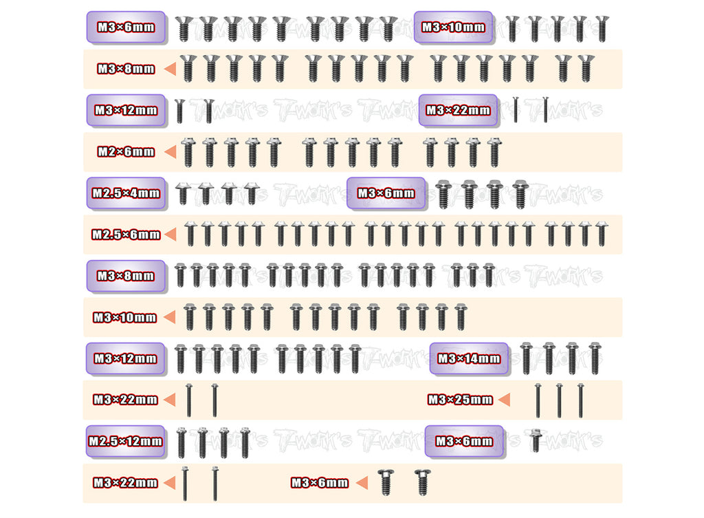 TSSU-TC8-S 64 Titanium Screw set ( UFO Head ) 116pcs. ( For Team Associated TC8 Steel-Spec Car )