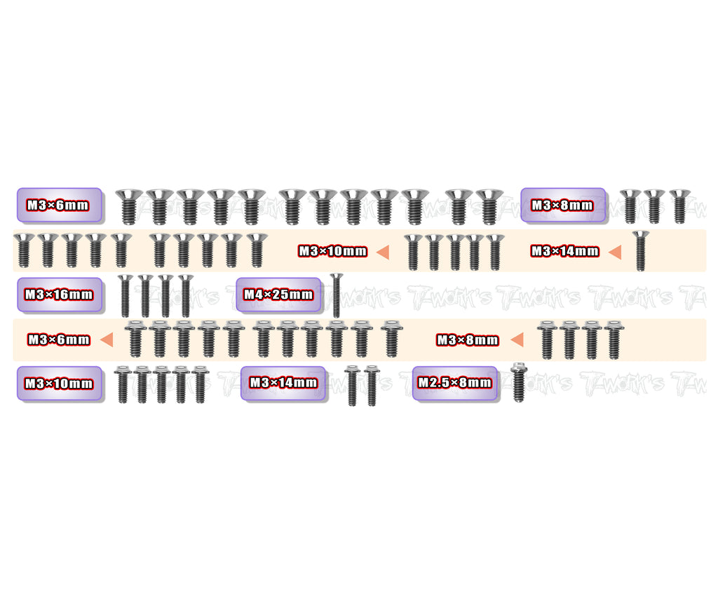 TSSU-F1ULR5 64 Titanium Screw set ( UFO Head ) 59pcs.( For EXOTEK F1 ULTRA R5 )