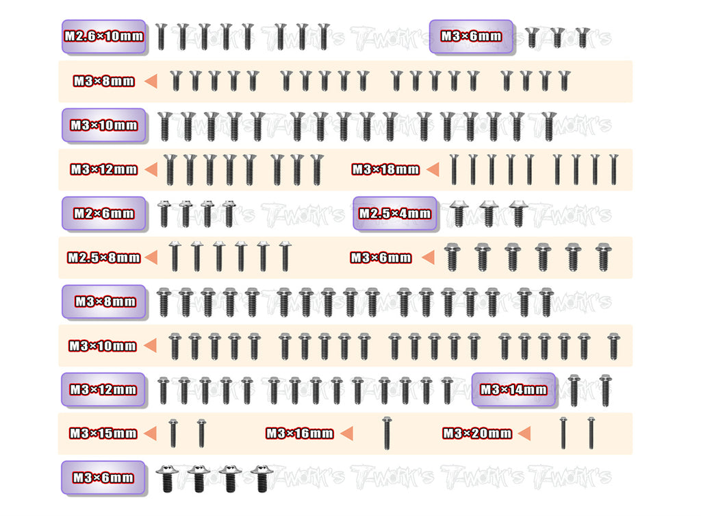 TSSU-TC8-S 64 Titanium Screw set ( UFO Head ) 116pcs. ( For Team Associated TC8 Steel-Spec Car )
