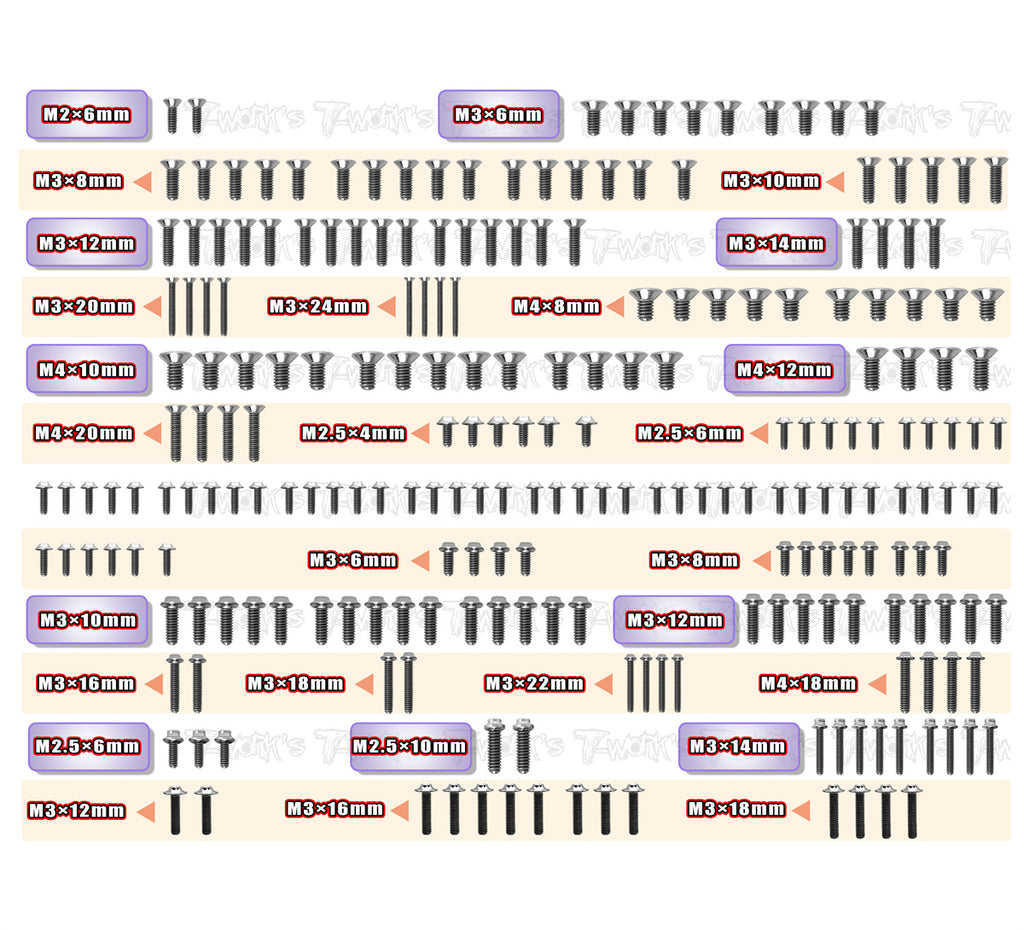 TSSU-SRX8GTR 64 Titanium Screw set ( UFO Head ) 231pcs.( For Serpent SRX8GT R)