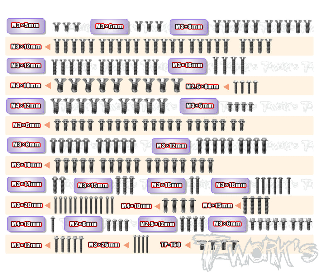 TSSU-X3GTS'26 64 Titanium Screw set ( UFO Head ) 204pcs.( For Hong Nor