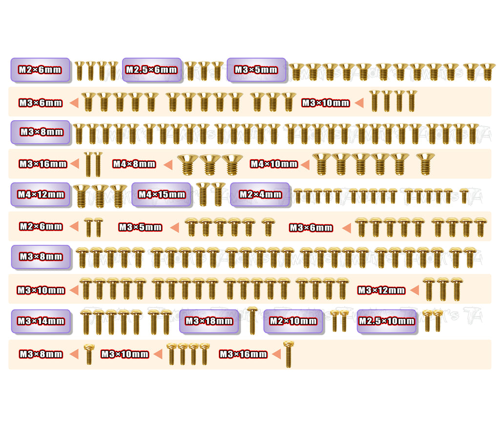 GSS-MRX7 Gold Plated Steel Screw Set 181pcs. ( For Mugen MRX7 )