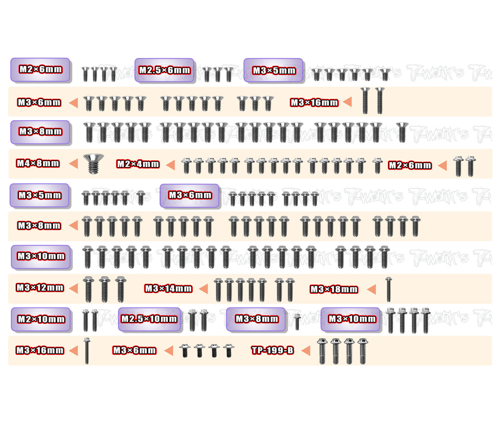 TSSU-MRX7 64 Titanium Screw set ( UFO Head ) 189pcs.( For Mugen MRX7 )
