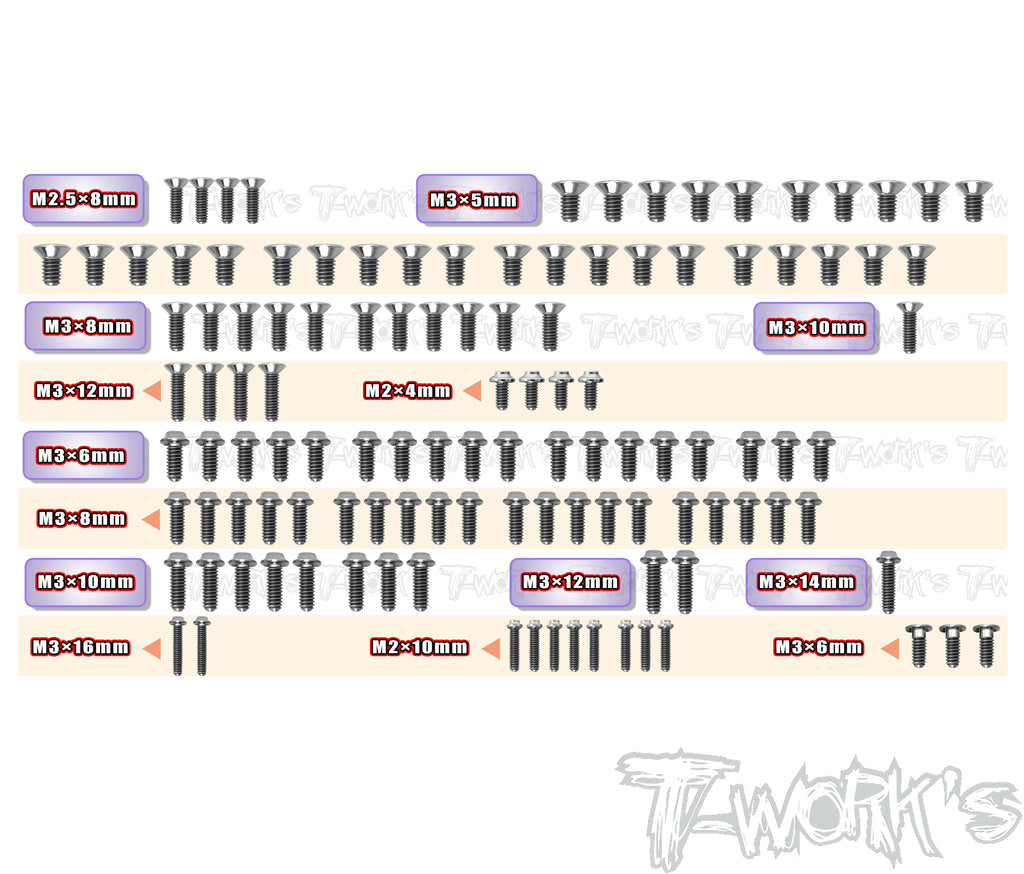 TSSU-TC8-G 64 Titanium Screw set ( UFO Head ) 116pcs. ( For Team Associated TC8 Graphite-Spec Car )