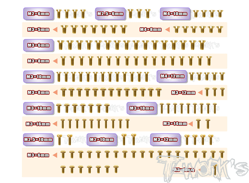 GSS-MP10Te Gold Plated Steel Screw Set 142pcs. ( For Kyosho MP10Te )