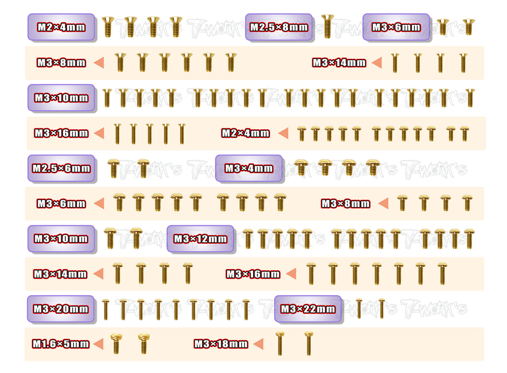 GSS-MP10Te Gold Plated Steel Screw Set 142pcs. ( For Kyosho MP10Te )