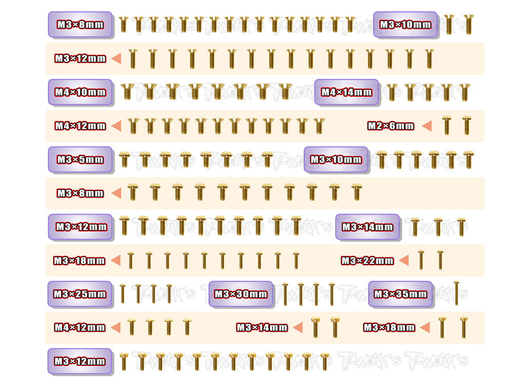 GSS-MP10Te Gold Plated Steel Screw Set 142pcs. ( For Kyosho MP10Te )