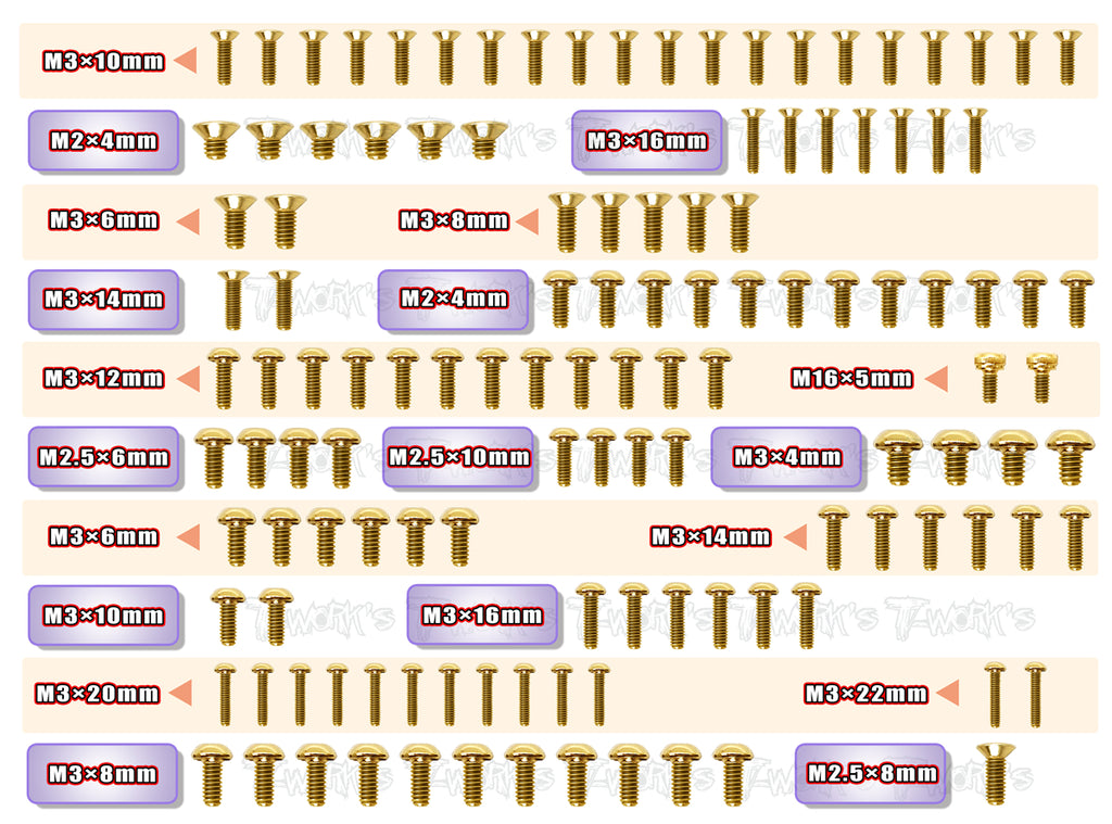 GSS-MP10Te Gold Plated Steel Screw Set 142pcs. ( For Kyosho MP10Te )