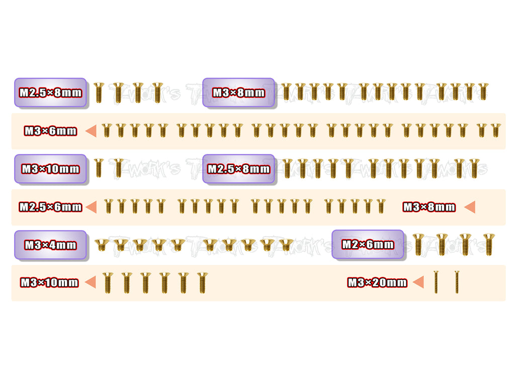 GSS-MP10Te Gold Plated Steel Screw Set 142pcs. ( For Kyosho MP10Te )