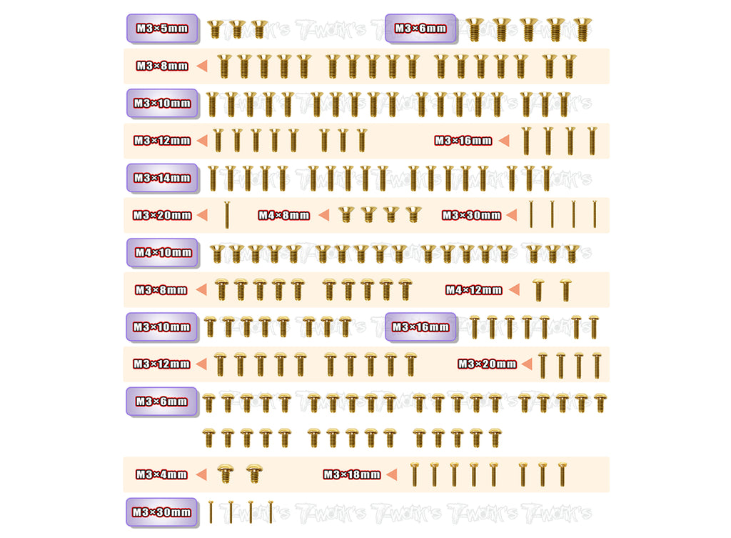 GSS-MP10Te Gold Plated Steel Screw Set 142pcs. ( For Kyosho MP10Te )