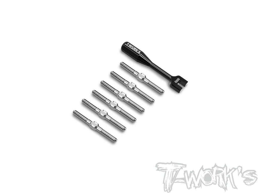Turnbuckle Set using high quality titanium , will shed weight in all the right places while retaining easy adjustability and timeless looks. Super durable Titanium with a thick center section to provide incredible strength that can stand up to repeated abuse on the track. Designed to work with the stock rod ends these are the ultimate easy upgrade to your car platform. Stand out from the crowd and enhance performance at the same time with this Titanium turnbuckle Kit.