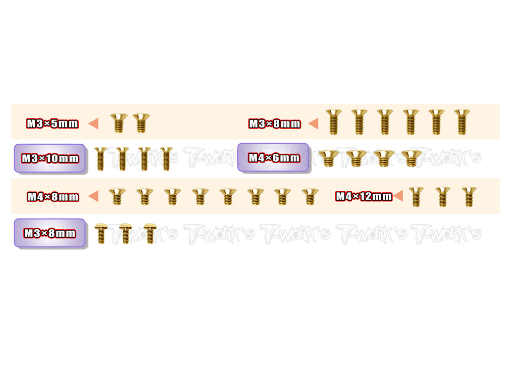 GSS-RX8E'23-B Gold Plated Steel Screw Set( Bottom ) 30pcs. ( For Xray RX8E 2023 )