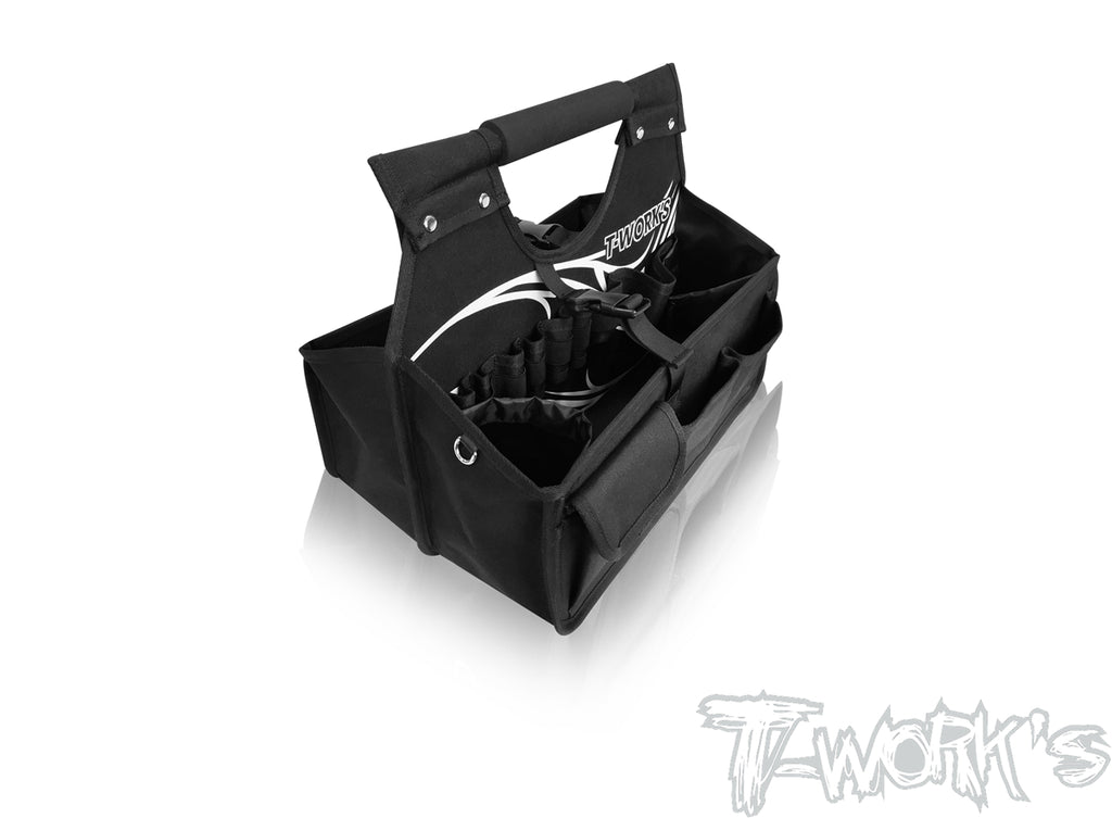 New from T-Work's is the T-Work's Pit Bag. Engineered in all-black heavy duty fabric denier and handle. The bag has multiple slots for tools and compartments to hold essentials and spares including starter box, glow heater, tuning screwdriver, fuel gun, fuel etc.