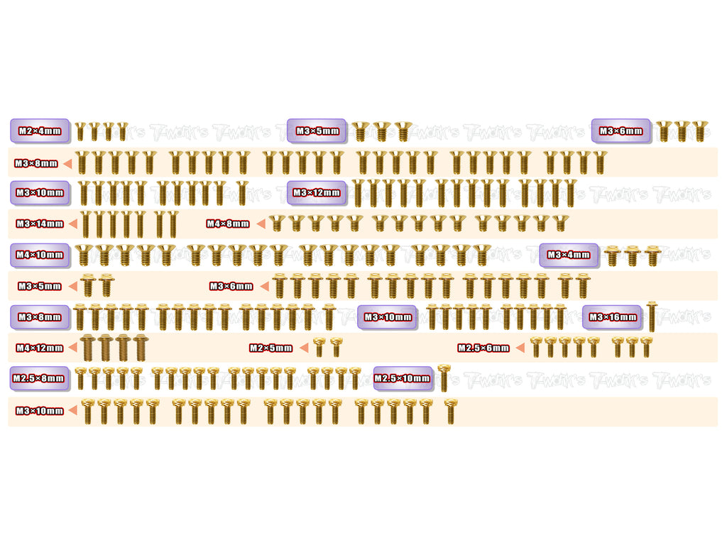 GSSU-NITRO'25 Gold Plated Steel UFO Screw Set 209pcs. ( For RAPTOR 1:8 GT NITRO )